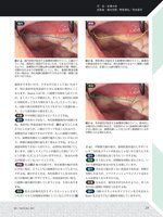 司 会:米澤大地回答者:堀内克啓/野阪泰弘/寺本昌司司 会:米澤大地回答者:堀内克啓/野阪泰弘/寺本昌司減張ができないので、できるだけ長くしておいたほうが、特に垂直的な骨造成のときには確実に開きにくくなります。Simionらは「昔、口蓋側で切開を入れていたが、よくメンブレンが露出した。そして、最終的に唇側に切開を持ってきたら開かなくなった」と言っていました。GBRの術式を開発するうえでもそういう変遷があった、という話を彼から聞きました。米澤やや唇側に設定するということですね。堀内中央寄りではなく、角化粘膜範囲内の唇側ですね。垂直的に骨造成量が多ければ、図2-aで示したあたりにしたほうが、口蓋のフラップを長くとれるので、歯槽頂付近で縫合できるのですが、もし口蓋側で切開したら、歯槽頂を越えて口蓋側で縫合しないといけないので、唇側の減張切開の量も多く要るんですね。きちんと減張切開をできない人が行うと、必然的に創が開いてしまいます。GBRしてメンブレンが露出した際に「メンブレンが悪いんだ」と言う人がいますけれど、「あなたの術式が間違っている」ということです。野阪私は図2-bの位置です。角化粘膜の幅が非常に少ない場合、どうしても口蓋側寄りになってしまうんですよね。縫合するときは、角化粘膜どうしを合わせたほうが絶対に縫いやすいですし、骨造成量が多い場合、口蓋側に縫合線が位置してしまうことは、たまにありますね。寺本私も以前堀内先生とディスカッションさせていただいてから切開線は唇側にしているんですけど(図2-c)、中間歯欠損の場合、歯間乳頭を温存しやすいという二次的なメリットがあるんじゃないかと思うんです。堀内口腔前庭も浅くなりにくいですよね。寺本そうなんです。切開線を唇側に変えてから、いろいろ御利益があるのかなと実感しています。堀内それほど量の多くない骨造成であれば、唇側で切開したほうが、ソフトティッシュマネジメントはほとんど必要なくなりますからね。米澤なるほど、堀内先生が言われたように、多くの先生は口蓋側に切開を入れますよね。堀内GBRのテクニカルガイドラインなどを見ると、Buserなどは今でも口蓋側を切開していますから。図2-a 堀内克啓が設定する歯槽頂切開のライン。口蓋のフラップは、原則的に減張ができないため、できるだけ長くなるように、歯槽頂水平切開は角化粘膜の範囲内で唇・頬側に切開を加えるほうが創哆開しにくい。特に、垂直的骨造成量が多い場合は、角化粘膜の範囲内でできるだけ唇・頬側に設定すべきである。図2-b 野阪泰弘が設定する歯槽頂切開のライン。垂直的な骨造成術を行う場合は、角化粘膜内でなるべく頬側に切開線を入れる。近遠心とも縦切開を入れる。図2-c 寺本昌司が設定する歯槽頂切開のライン。基本的には堀内氏と同様であるが、本症例のように前歯部の骨欠損が少ない場合には、歯間乳頭にメスを入れずに唇側寄りに水平切開を入れる場合もある。堀内野阪寺本23─Vol.22,No.1,2015023